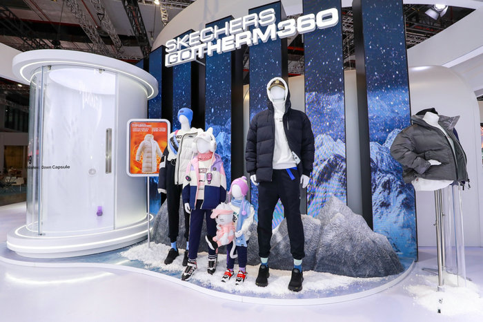除运动鞋服品类外,斯凯奇本次进博会还展出羽绒服黑科技产品。除独家暖绒科技外,更针对消费者的需求增添功能,石墨烯材质防静电、特氟龙三防科技有效应对湿水油污。“这款羽绒服采用GOTHERM360科技,具有长效锁温性能,可以反射体温,持续保暖,采用拒水面料,即使是寒冬腊月,雨雪天穿着,也能保持全天温暖状态在线。”徐晹炯介绍道。斯凯奇“未来科技”展示区特设低温体验仓,供参展观众亲自体验GOTHERM 360科技羽绒服,感受瞬时升温,长效保暖效果。