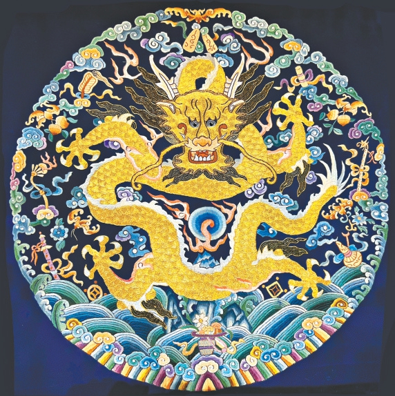 刘晓燕用3年时间完成的作品《云起龙升》,灵感来自于清代龙袍胸背的正龙。