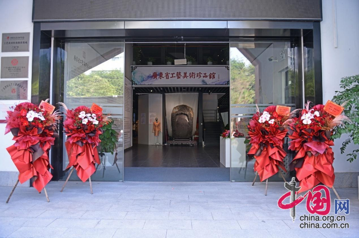 开幕仪式上,赵亚坤将此次参展的《龙耀凤熠》创意潮绣+珠绣改良版龙凤褂裙系列作品之一捐赠给珍品馆永久收藏,广东省工艺美术有限公司董事长成立锋为赵亚坤颁发了收藏证书。