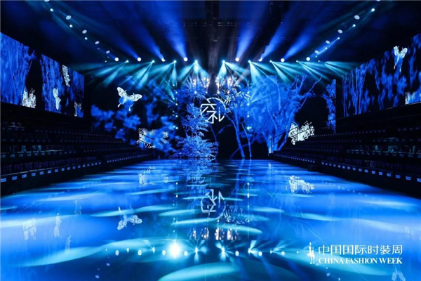 整场发布会以蝴蝶妈妈的故事作为源起,结合湘西苗族非遗物质文化遗产为设计灵感。通过苗族文化蝴蝶妈妈的故事来体现世间大爱,寓意深远,围绕主题,实现两个维度两个空间的交织碰撞。