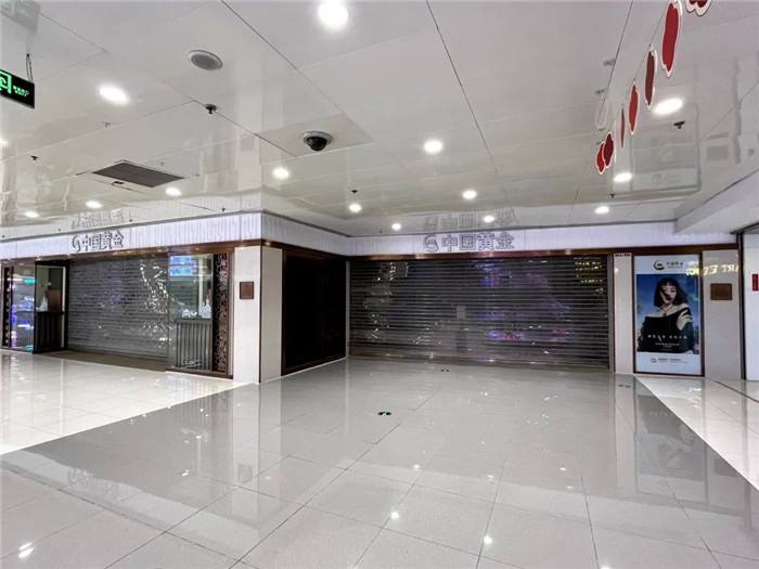 出事后,新京报记者来到这家门店发现,大门紧闭,从卷帘门外观察,柜台里没有任何珠宝首饰,衬得柜台后的“中国黄金”标识格外显眼。