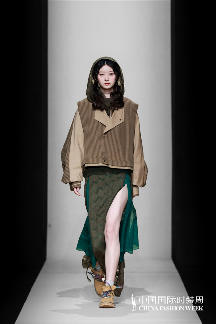 青年女装首席设计师栾述涛从这一设计导向中提炼出纯真无邪的态度,旨在使用活泼青涩宛如稚子的融合设计来鼓励穿着者简单纯粹,活在当下,永远保持孩子的好奇心。为由内而外探索积极与大自然联结的低碳生活注入“山”一般的宽松心和安全感。