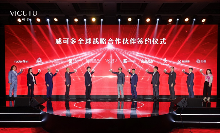 随着VICUTU、RED VICUTU及GORNIA全新品牌LOGO的揭晓,VICUTU品牌30周年盛典正式迈入第三篇章“未来畅想”。蔡昌贤代表格雷时尚集团,与大兴经开区、北京服装学院以及国内外顶级面料商VBC、PIACENZA、南山智尚科技股份有限公司精纺公司,零售商业地产巨头首都机场商贸、北京王府井集团,国际知名传播集团阳狮集团、罗德传播集团、时趣互动等分别来自产业上下游四大领域的战略合作伙伴举行签约仪式,呼应在全新“正装全场景”战略指引下,VICUTU未来五年在研发设计、生产供应链、渠道建设及品牌推广四大维度的一系列积极行动。