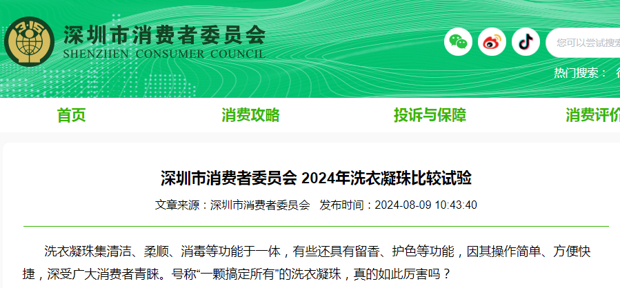 深圳市消费者委员会2024年洗衣凝珠比较试验
