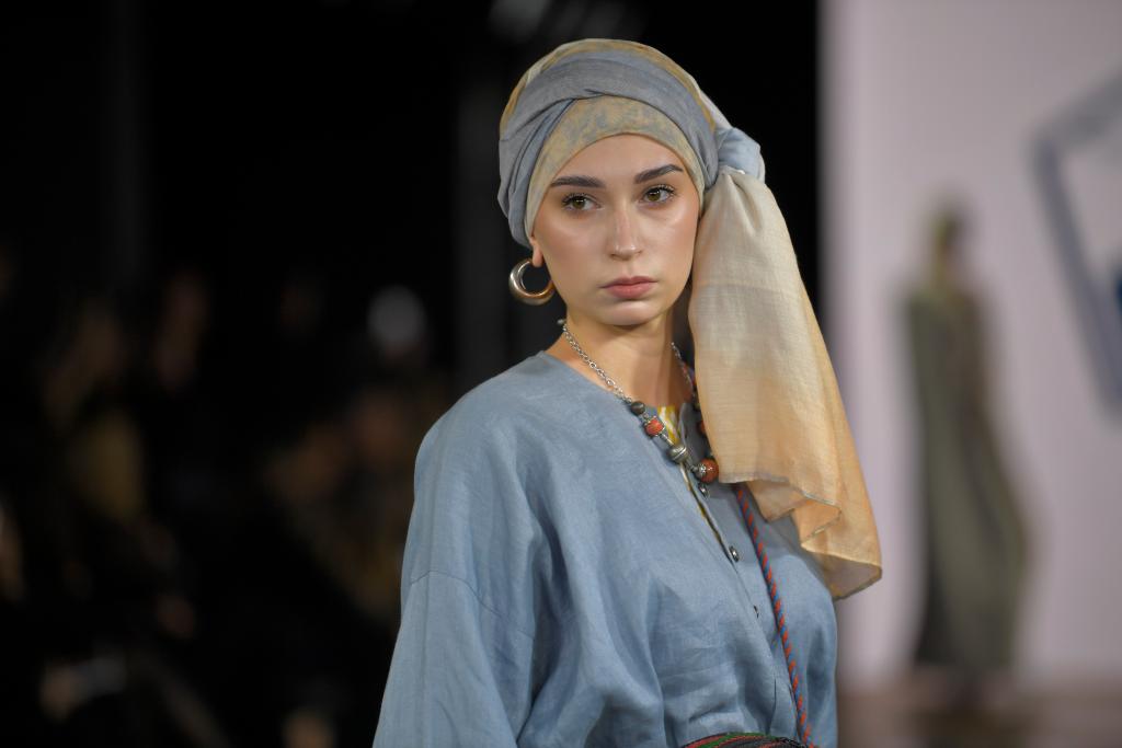 10月26日,模特在俄罗斯首都莫斯科举行的伏尔加时装周上展示时装。