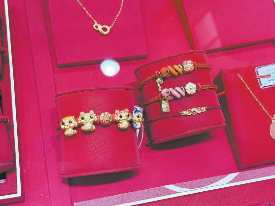 “金蛇送福,好‘巳’多多。”在菜百首饰总店一层大厅,蛇年贺岁金条、蛇年生肖纪念币、蛇年限定转运珠、项链坠等多款蛇年贺岁产品吸引了众多市民选购。十余款新上市的转运珠、小项坠均以“蛇”为设计元素。金灿灿的卡通小蛇配上福字、小葫芦、小苹果等造型,既憨态可掬又有美好寓意。柜台前,店员正为顾客搭配生肖蛇转运珠手链,不少人是为家中老人、孩子购买。“我家孩子是2013年生的,准备给他买一条手链。这几款蛇年新品都很好看。”市民方女士说。目前,菜百首饰售卖的“抱抱蛇”“小蛇多多”等贺岁系列产品都很受欢迎。“在中国传统文化中,蛇象征着长寿、健康和好运,蛇年贺岁产品自10月下旬上架以来,销售情况一直不错。”店员说。