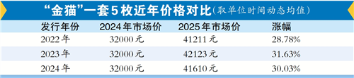 广东黄金协会首席黄金分析师朱志刚向记者表示,从长远看来,熊猫金币的升值空间还是比较大的。广州熊猫币资深收藏者提醒,特殊年份的“金猫”之所以升值幅度更大,关键在其发行量。需要提醒的是,当下年轻人热买的“小克重”不太具备变现能力,建议可购入流通性更强的30g规格。