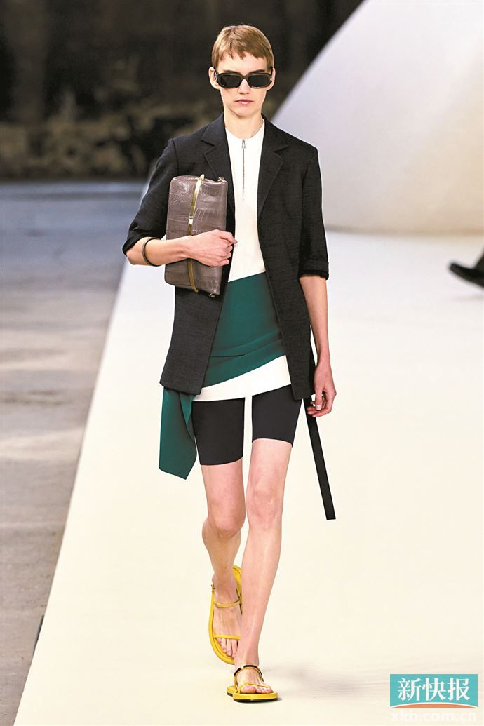 骑行短裤与长上衣、短裙层叠搭配,打造既有力量又不失女性柔美的造型。