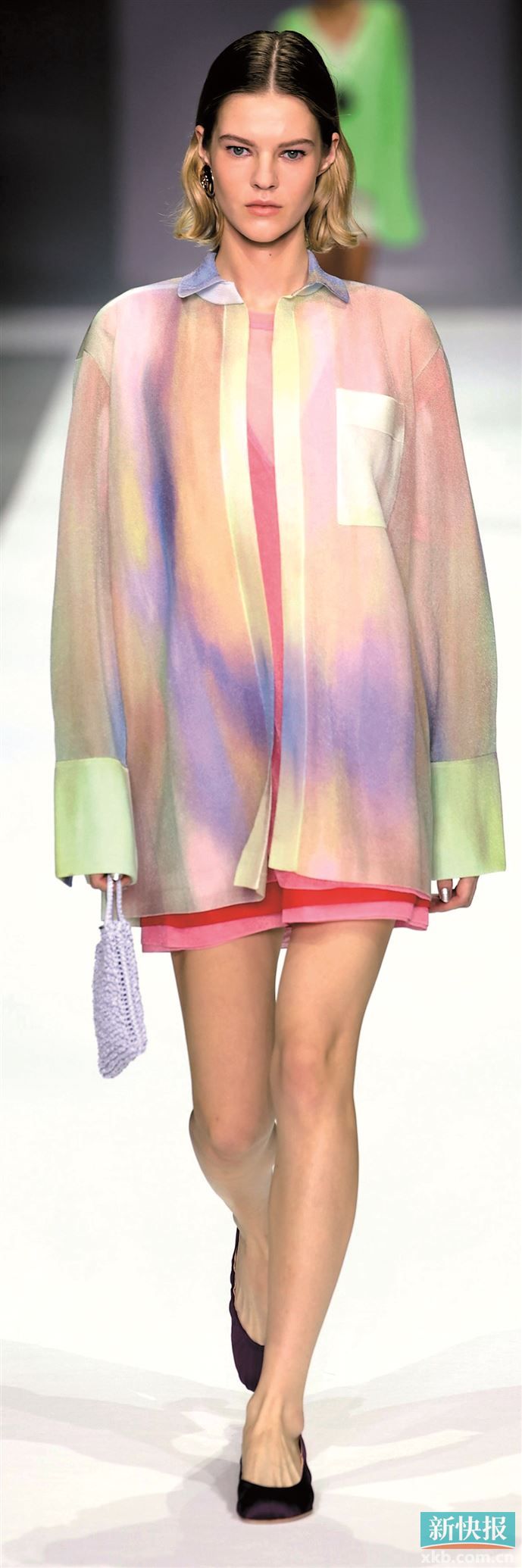 帕斯蒂尔(Pastel)一词源于意大利语Pastello,色彩如画中轻轻铺陈的颜料,不浓不烈,不急不躁而质感细腻——当其从画布上转移到衣物上,便催生出属于夏天的低饱和色彩美学,摒弃刻意表达,更像柔和的情绪背景,不张扬,但以温柔的力量包裹穿着者。“日光黄”“柔雾粉”“水彩蓝”“薰衣草紫”“薄荷绿”等清新派流行色都属于帕斯蒂尔风,只是更倾向于将这些同样拥有柔和特质的色彩叠搭在一起。薄纱面料的大肆流行,也让柔和色彩间的搭配界限更为一体化,从而在光与影的交织中缓缓晕染、相互交融,呈现温柔梦幻的氛围,营造出“松弛自有力量”的融合状态。(记者 梁彧)