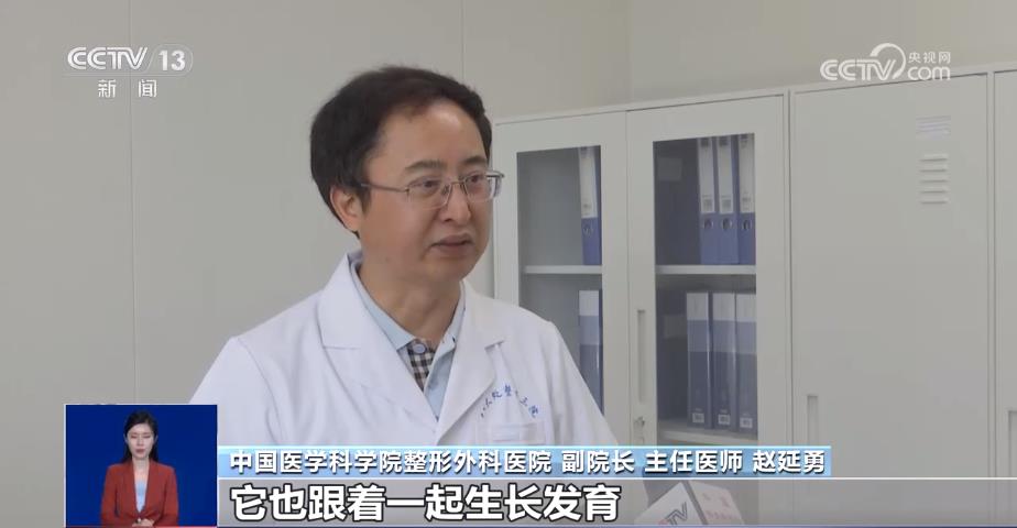 中国医学科学院整形外科医院副院长、主任医师 赵延勇:6周岁的时候小孩的耳朵基本上已经达到成人80%左右了,小孩的肋软骨具备了做耳廓支架的基本需求。因为肢体肋软骨是自身的组织,它也跟着一起生长发育,所以说肢体肋软骨造耳朵,它也跟着身体同步生长,所以说即使到了成年之后,耳朵外形和正常的耳廓外形基本上大小还是一样的。