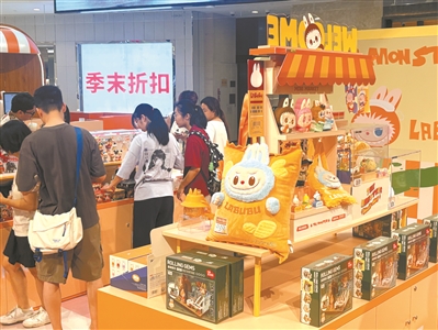 记者在走访各大商圈时留意到,泡泡玛特天环广场快闪店持续火热,怪味便利店系列更是备受年轻消费者喜爱,另外还有香港迪士尼乐园20周年庆典展览现身天河城,韩国Wiggle Wiggle广州首店开业,名创优品linefriends联名系列推出……新旧玩偶IP之间有种“大战”广州的既视感。