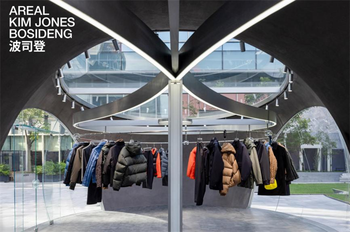 AREAL 快闪店首站落地上海地标商业中心静安嘉里中心。空间灵感源自“∞”无限符号,以空间美学延展“着装哲学”的探索。开幕仪式上,波司登创始人、波司登集团董事局主席兼总裁高德康;英国设计师 Kim Jones;嘉里建设集团商业副总裁张芳;以及波司登品牌代言人于适等共同剪彩,标志着波司登在时尚领域迈出了重要一步。店内外延伸的“8”字形装置象征着功能与时尚、户外与城市之间的边界重组与融合,精准呼应 AREAL 打破界限,持续前行的核心理念,为访客营造出兼具科技感、先锋美学与探索精神的沉浸式体验空间。