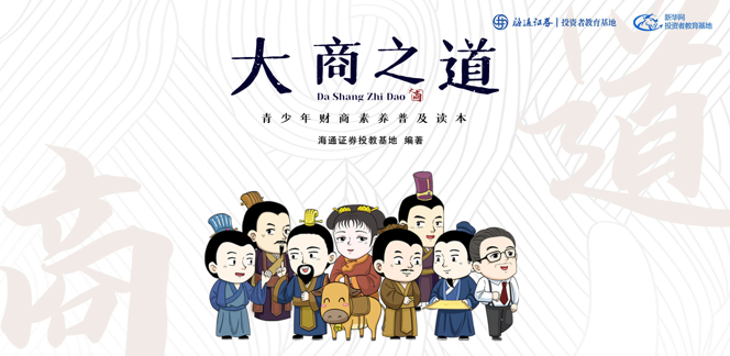 为推动投资者教育纳入国民教育体系,培养青少年诚实守信、珍惜财富、克勤克俭的价值观,新华网投教基地联合海通证券投教基地推出《大商之道》青少年财商素养普及读本,用漫画形式解读中国商业历史人物,弘扬传统财商文化。