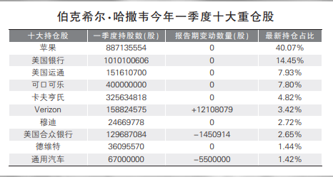 具体来看,伯克希尔·哈撒韦一季度对苹果、美国银行、美国运通、可口可乐以及卡夫亨氏等前五大重仓股的仓位保持不变。苹果公司仍是巴菲特持仓规模最大的股票,期末价值约为1084亿美元,受苹果公司一季度股价下跌影响,巴菲特对苹果公司持仓的期末市值低于此前一个季度约93亿美元,持仓占比下降到了40.07%。