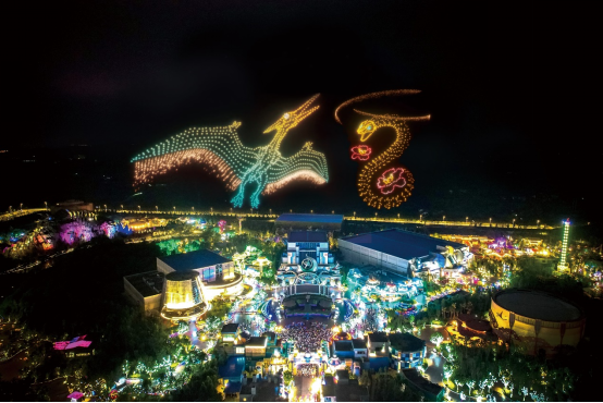 2024年,华强方特不断拓展宣传渠道和平台,持续放大品牌声量;在园区运营中,结合传统节庆文化、潮流文化、地方特色文化,综合运用VR沉浸式体验、无人机表演等新技术,创新推出“国风”“国漫”“山海奇幻夜”“跨年狂欢夜”等丰富多样的主题活动,打造特色夜经济,做大客流、做高人气、做足体验、做精品质。