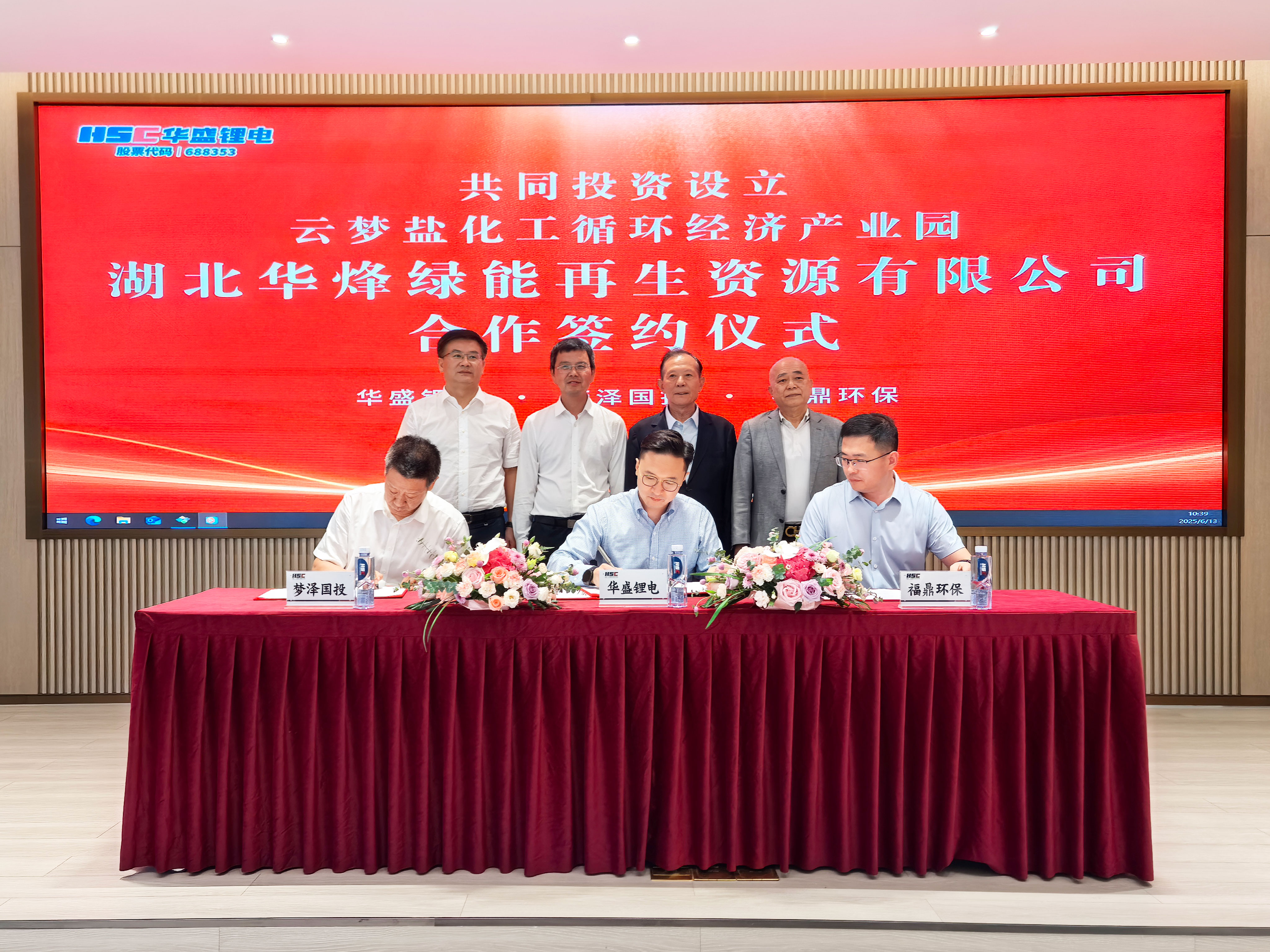 6月13日,江苏张家港华盛锂电三厂内,一场意义深远的合作正式落笔成章。在湖北省孝感市云梦县人民政府的鼎力支持与现场见证下,宜兴福鼎环保工程有限公司(以下简称 “福鼎环保”)、江苏华盛锂电材料股份有限公司(以下简称 “华盛锂电”)以及湖北梦泽国有资本投资运营集团有限公司(以下简称 “梦泽国投”)就共同投资建设云梦盐化工循环经济产业园配套危废处置中心项目,隆重举行投资签约仪式,开启了三方携手共进、共筑绿色循环经济的新篇章。