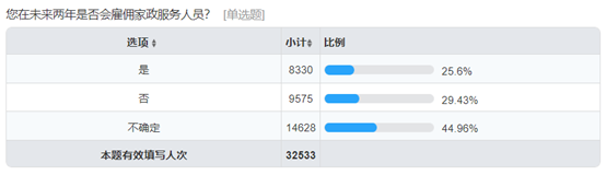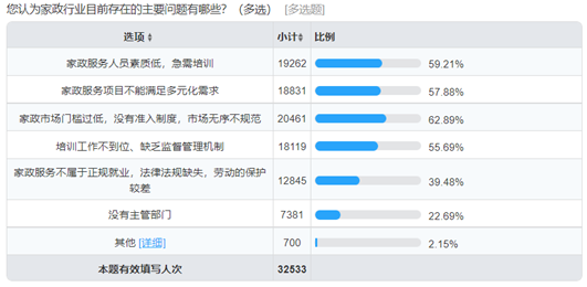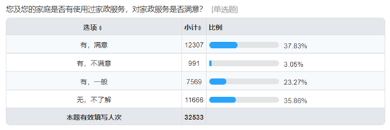 新华网北京9月3日电(任禹西)8月6日,新华网联合全国妇联妇女发展部发起家政行业公众需求情况调查,截至目前共收到32533份有效问卷,引发社会广泛关注。