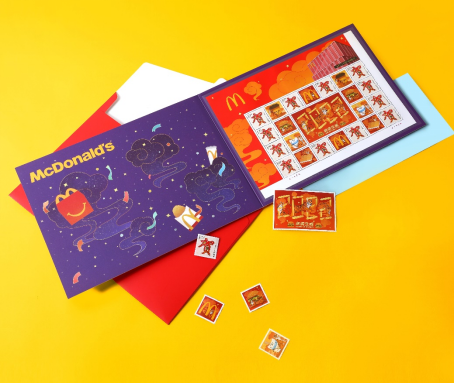 麦当劳中国再次携手中国邮政,为壬寅年特别定制的虎年生肖邮票“爱老虎邮” 近日于官方线上周边店推出,共发行5000份。邮票设计以金色和红色为主,威风凌凌的老虎与金色拱门、巨无霸、薯条等经典品牌元素相映成趣。麦当劳中国还同步发布了88888个虎年主题的微信红包封面赠予粉丝,不用见面,您也可以为亲友送上虎虎生威的美好祝福。
