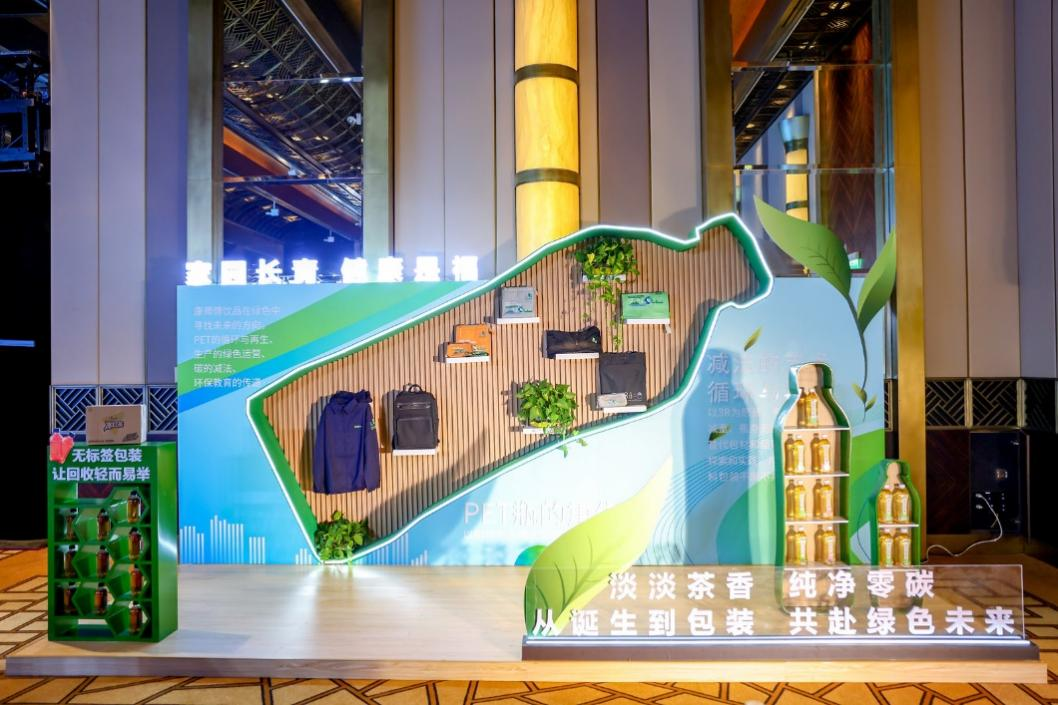 康师傅碳中和展示台(包含国内首款取得碳中和证书的茶饮料纯萃零糖、“无标签”饮料PET回收产品等)