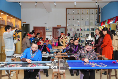 伴随着燕之屋“天才妈妈”贵州苗绣梦想工坊的正式揭牌,几位绣娘代表闻鼓起舞,用当地特有的方式《踩鼓舞》表演表达对爱心人士的感谢,并邀请领导嘉宾们共同起舞,亲身感受苗族文化风情。现场歌声、鼓声、欢笑声连成一片,展现了黔东南地区浓郁的民族风情。启动仪式圆满落幕后,来宾们还一同入坊参观体验,感受非遗文化手工苗绣的魅力。