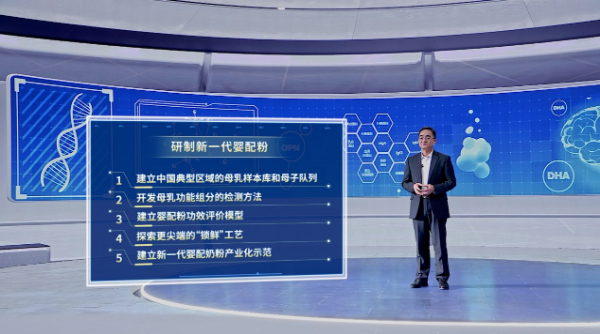发布会上,飞鹤对外公布其牵头申报的——“基于中国母乳研究的新一代婴配乳粉制造技术研究与示范”项目成功获批。这是继去年飞鹤与江南大学、大连工业大学等联合揭榜“婴配乳品新型核心配料规模化制备技术创新及示范”项目后,再次揭榜“十四五”国家重点研发计划项目。
