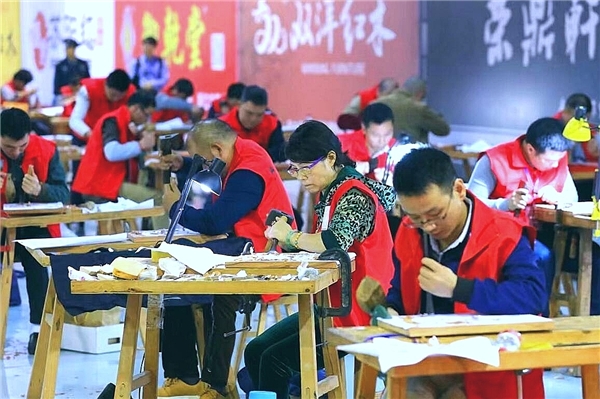 非遗工美技能大赛,打造东阳“文化工匠”。图为木雕大赛现场