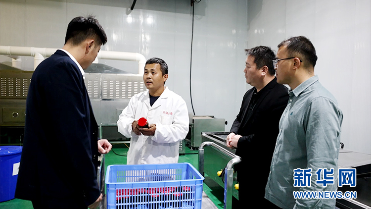 新村镇芦蒿深加工企业展示新产品。新华网发(董振乾 摄)