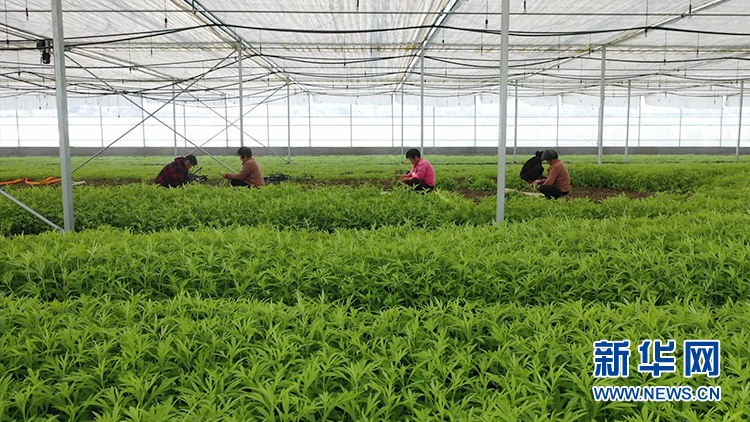 新村镇芦蒿大棚内景。新华网发(董振乾 摄)
