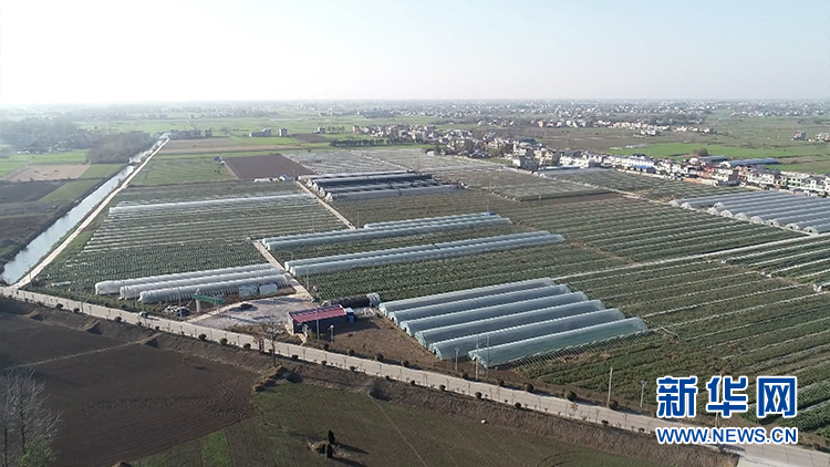 无人机航拍新村镇芦蒿生产基地。新华网发(董振乾 摄)