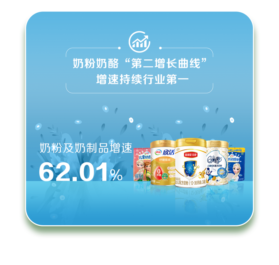 伊利持续培育有机乳品、乳及植物基营养品、奶酪、天然矿泉水等高增长业务,推动相关战略举措落地,以上业务同比增速超20%。