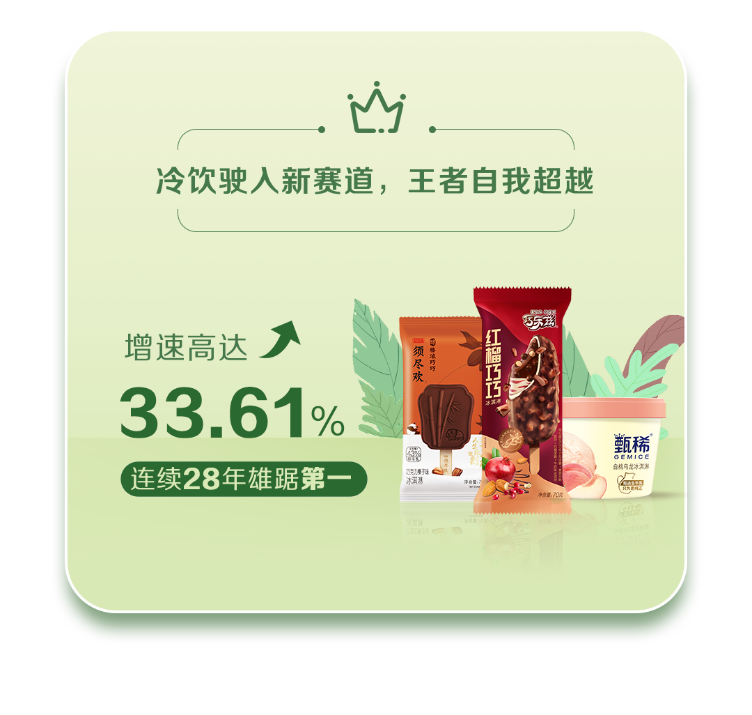 同时,伊利抓住冷饮产品属性从防暑降温转向休闲食品的市场机遇,推动冷饮业务进入更具潜力和成长空间的新赛道。报告期,公司冷饮业务营业收入95.67亿元,同比大幅增长30%以上,增速和市场份额连续28年稳居全国冷饮行业龙头地位。其中,明星品牌巧乐兹、甄稀、须尽欢增长尤为强劲。