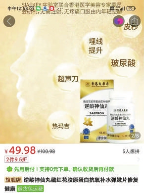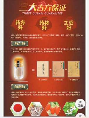 图二:鹿血牡蛎杞草片宣称“三大古方保证药方好药材好工艺好”。