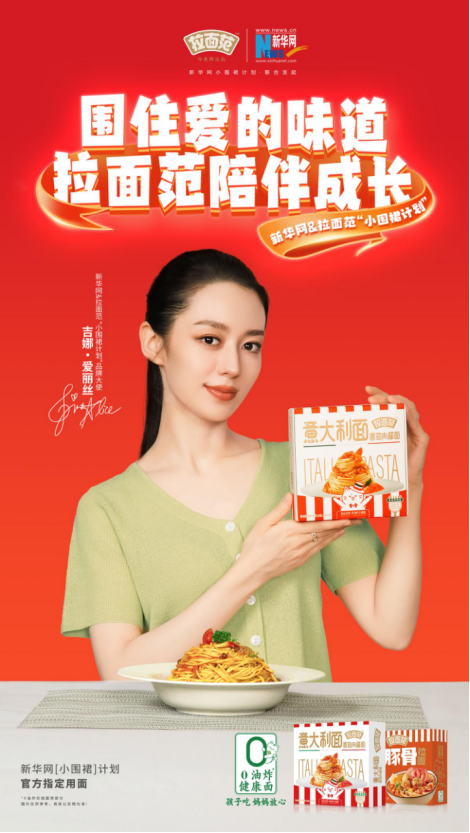 如今,随着拉面范官宣吉娜成为新华网×拉面范“小围裙”计划品牌大使,希望通过青年艺术家的加入推荐,让更多的家庭关注到儿童的食育教育,让更多的儿童吃上0油炸健康面,为下一代的健康成长贡献力量。