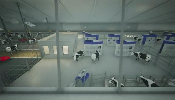 在牧场全智能无人牛舍内,可以看到一台台智能化设备正在有序运转,奶牛“悠然”生活其中,全自动、智能化的牛舍让牧场的整体运转更高效,实现了智能“无人化”养牛。