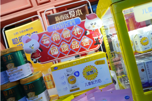 1月22日,由黑龙江省商务厅、黑龙江省供销社合作社主办的“舞动冰雪 冬汇龙江”年货大集在哈尔滨中央小街启幕,飞鹤携旗下产品爱本成人营养品、茁然嚼奶粉乳酪等亮相展台,吸引众多市民游客近距离感受及了解“黑土优品”。黑龙江省副省长韩圣健出席活动开幕式,在飞鹤摊位前驻足并倾听现场工作人员的介绍。