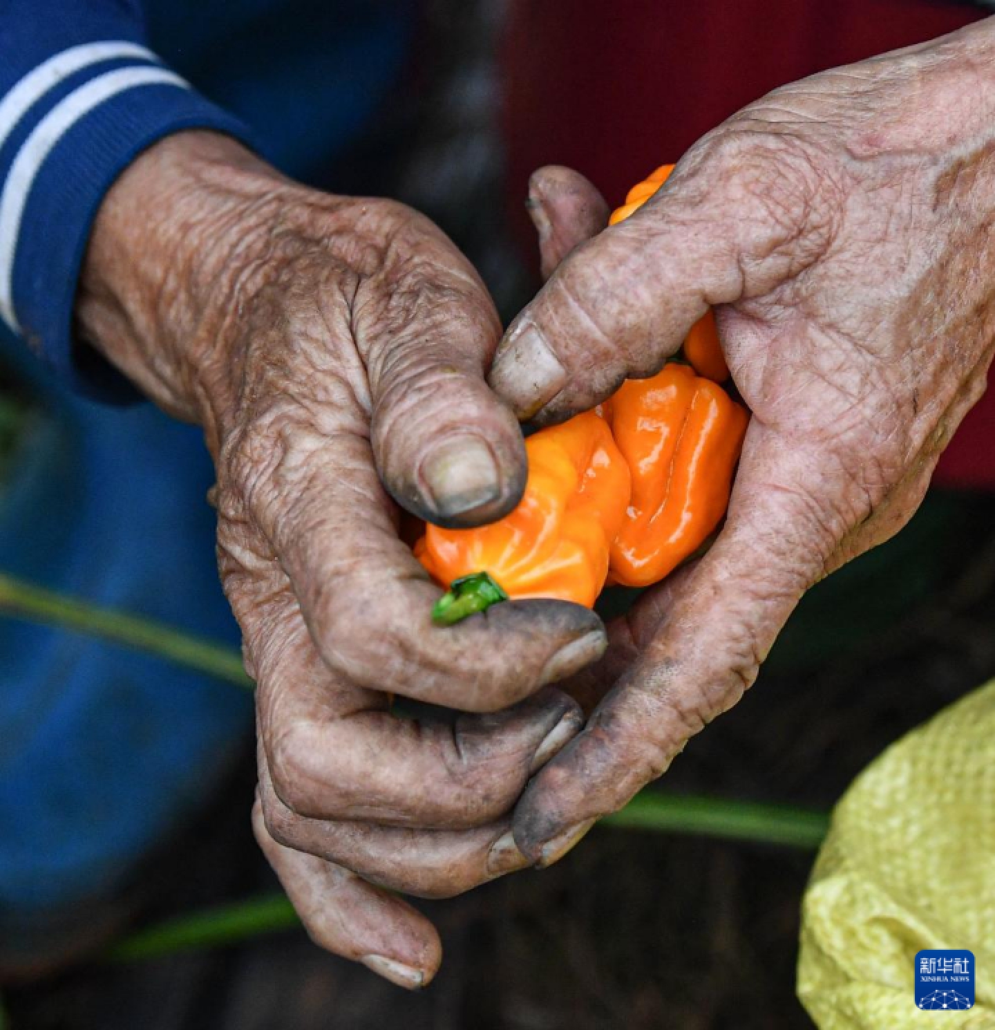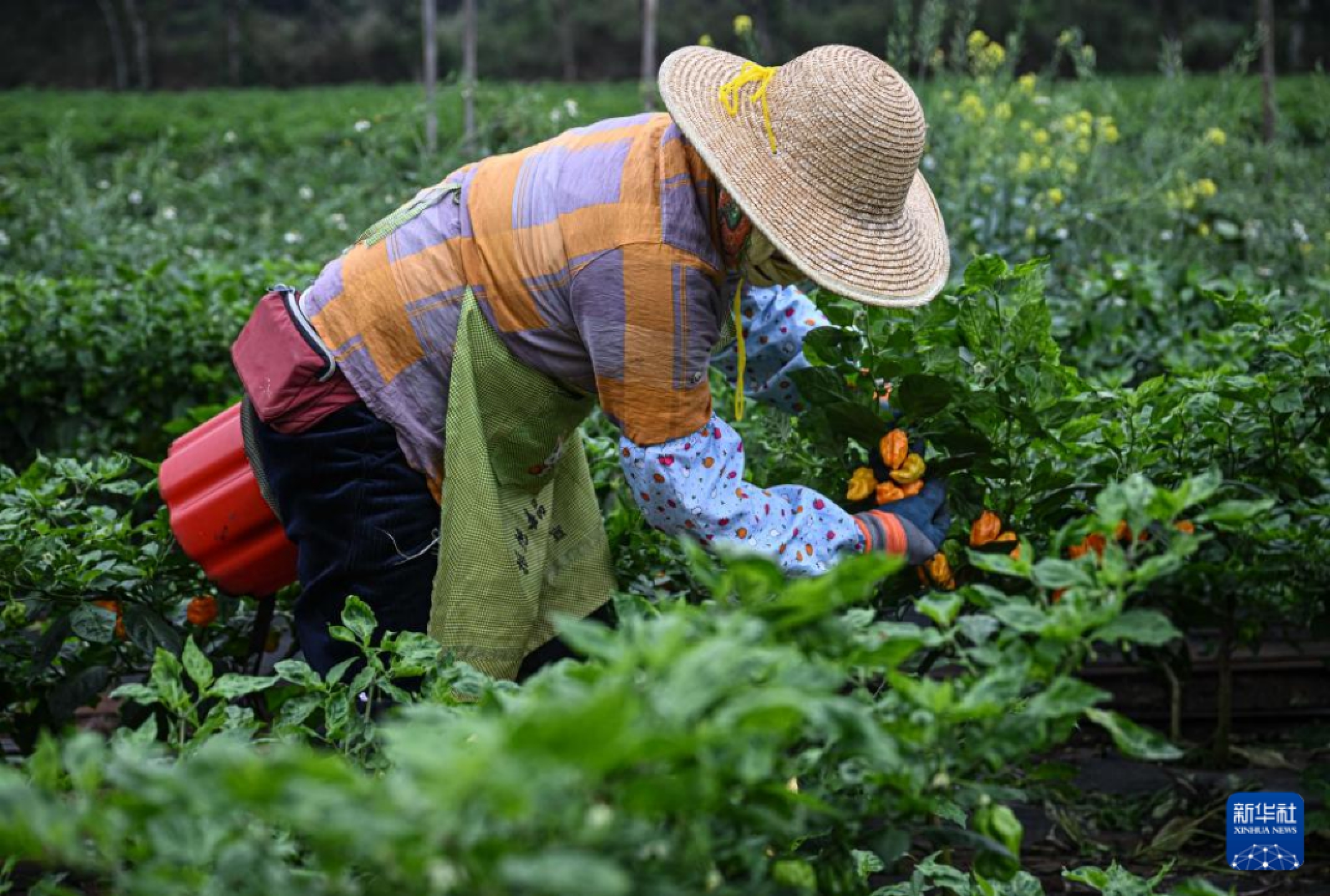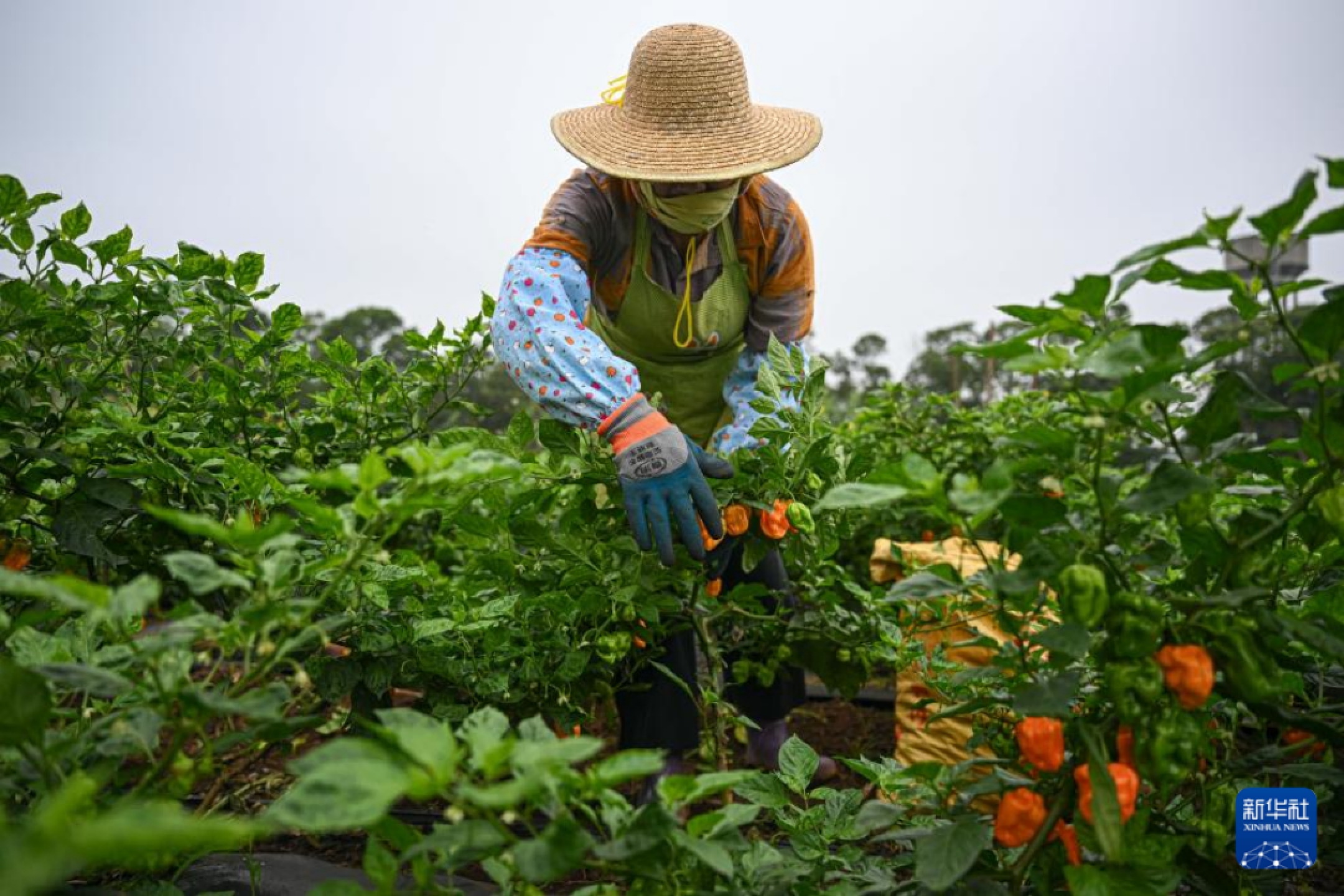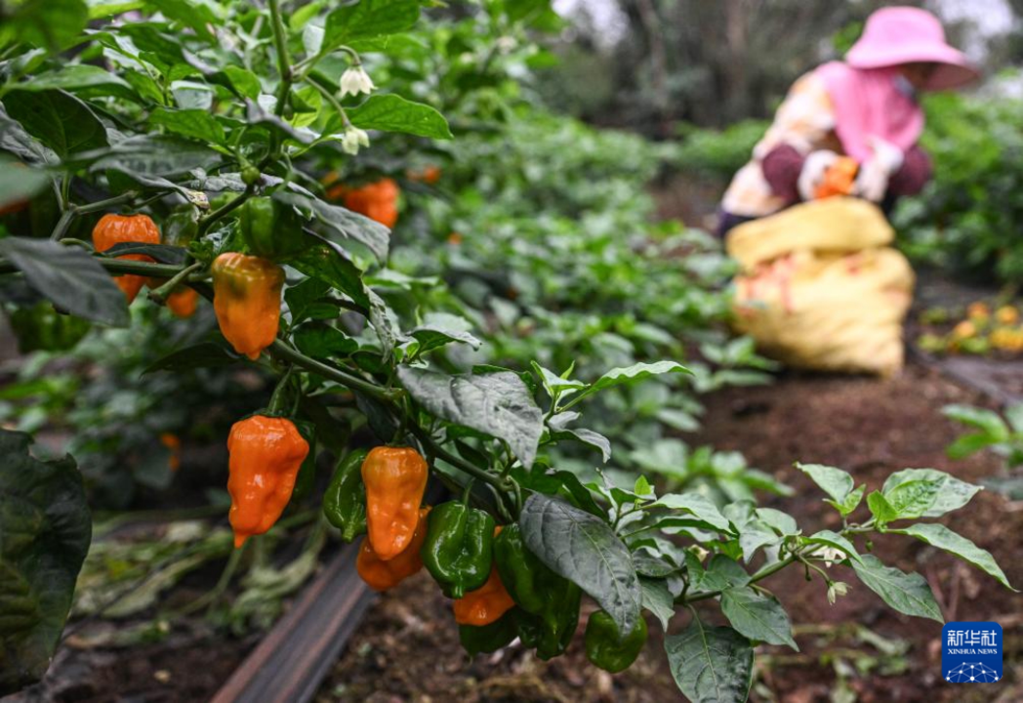 2月26日,村民在海南省海口市龙华区遵谭镇龙合村采收黄灯笼辣椒。