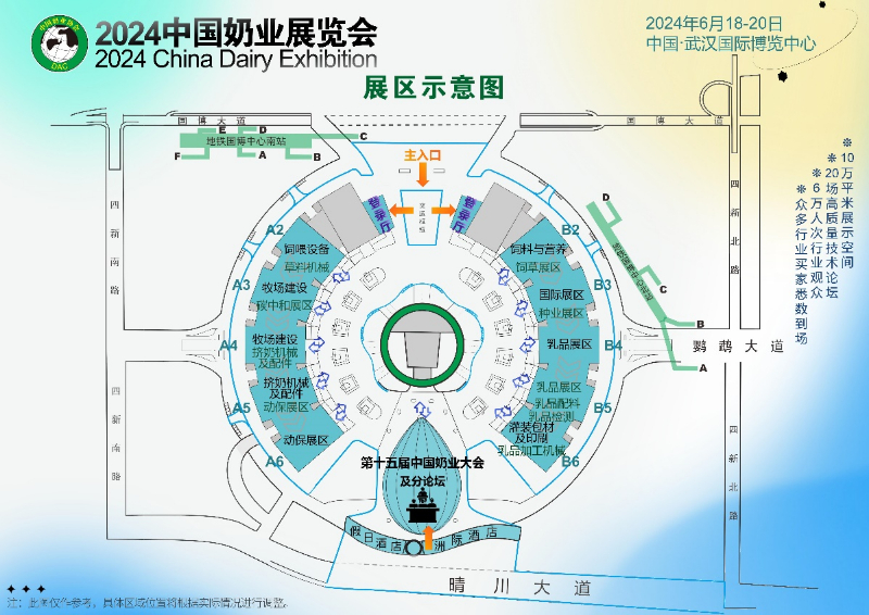 2024中国奶业展览会设置有中国奶业20强及观察员展区、国家展团、专业展区等,预计参展企业600家,展览面积约10万平方米。相关企业可以通过2024中国奶业展览会管理系统在线预定展位(网址:http://expo.dac.org.cn)。