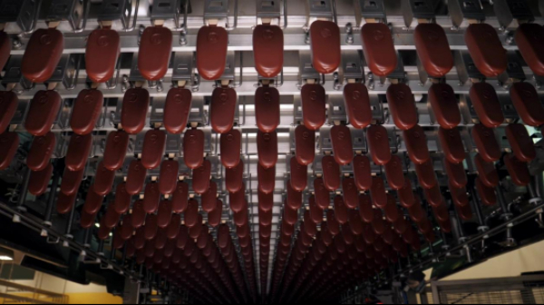走进和路雪太仓工厂,如同动画电影《查理和巧克力工厂》的画面映入眼帘,机械手、传送带安静且快速地运行着,只有少量工人在操作台前忙碌着……据介绍,这家工厂拥有16条生产线,生产包括可爱多、梦龙、千层雪在内的多个冰淇淋知名品牌产品。