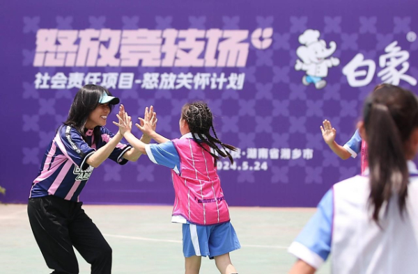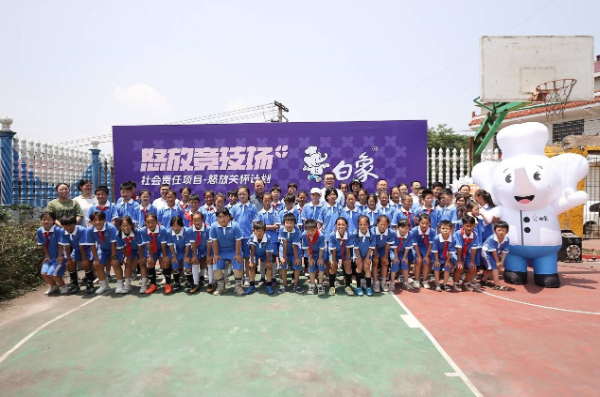 5月24日,由白象食品与国内首个街头女子足球赛事品牌“怒放竞技场”共同举办的“白象中国面·怒放关怀计划”社会公益活动在湖南湘乡壶天镇日新小学顺利举行。初代铿锵玫瑰代表人物范运杰、白象食品集团公共事务负责人张志远等嘉宾一起亲临现场,与全校师生共同开启别具一格的足球互动交流,共享快乐的足球文化,传递顽强拼搏、永不言败的女足精神。此外,作为2024“怒放竞技场”赛事合作伙伴,白象食品还向日新小学捐赠了物资,并与到场嘉宾、全校师生合影留念,为学生们送上了精心准备的礼物,以实际行动关爱青少年健康成长。