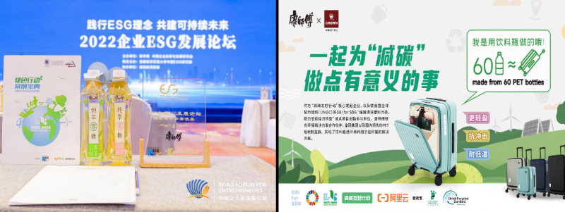 康师傅将食品安全和可持续发展定为非竞争领域,并主动与上下游、行业伙伴交流共享成果,与多方利益相关者进行广泛合作。例如,康师傅与合作伙伴一道,发起了“去瓶空想象岛与万物共生”活动,这是落地GDIforSDG(全球发展倡议助力可持续发展目标)的首个商业化rPET项目,实现了用康师傅废弃饮料瓶制作拉杆箱、野餐垫、手提袋、收纳盒等环保周边产品。此外,2023年上市的康师傅纯萃零糖原味茶饮料通过是国内首款获得认证的碳中和茶类饮料。