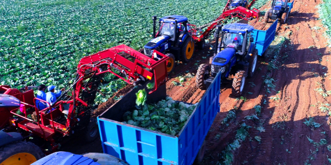 蔬菜基地机械化收割场景