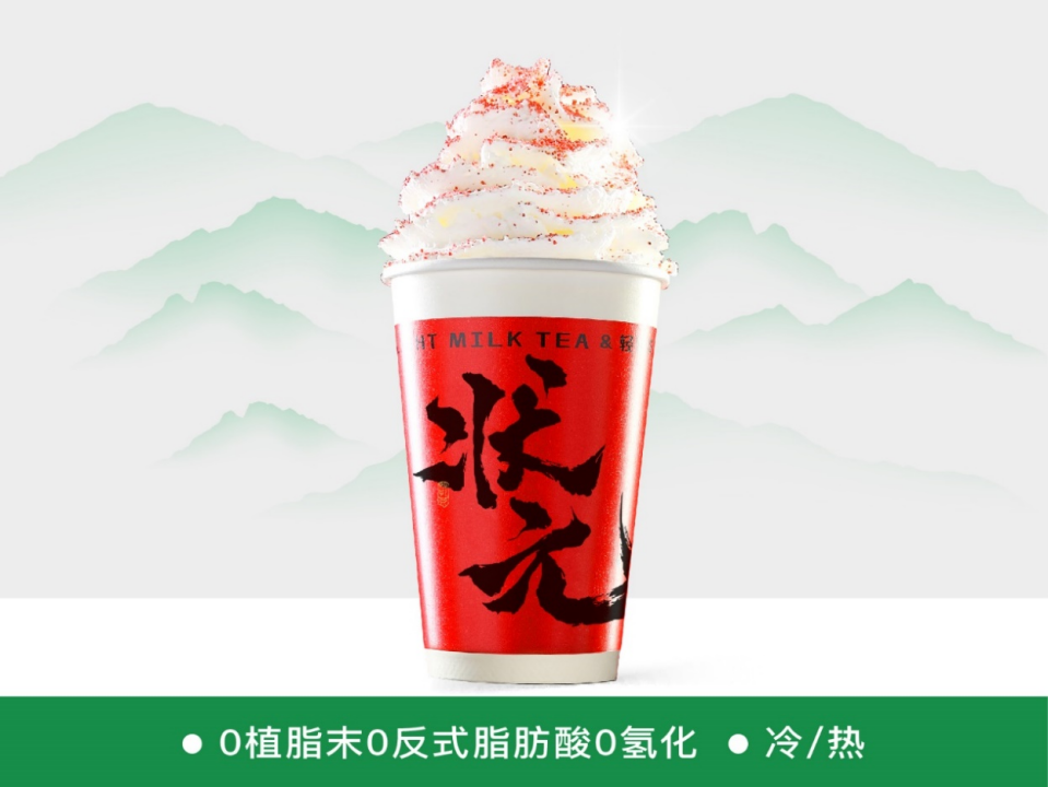正所谓春风得意马蹄疾,一日看尽长安花。金榜题名光耀门,状元及第耀乾坤。呷哺集团旗下茶米茶品牌在高考/端午即将到来之际,推出了状元红袍轻乳茶和“状元”轻乳茶系列产品。茶米茶“状元”系列轻乳茶,其茶叶精挑细选,实属茶中“状元”。它的主题设计尝试新中式、新国潮风格,运用铿锵有力的毛笔字点题,“状元“二字挥斥方遒,何等热血。