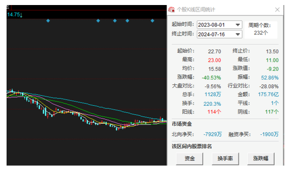 二级市场上,2023年8月1日至今(2024年7月16日)一年左右的时间里,公司股价下跌四成。