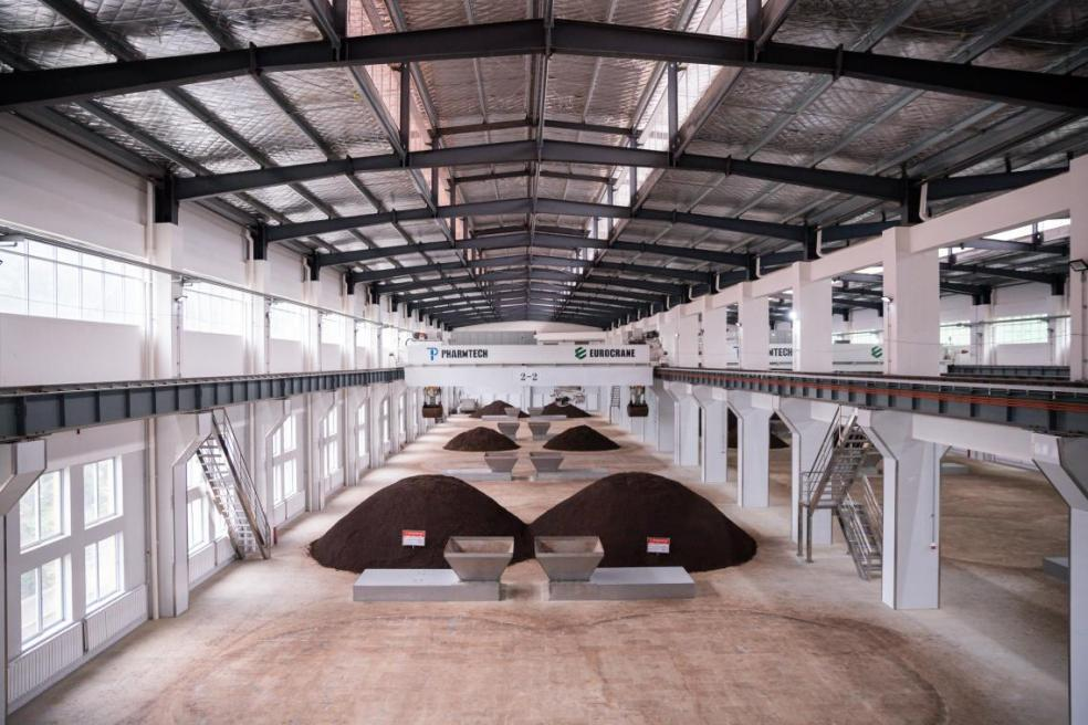 (图为国台智能酿造车间在开展堆积发酵)