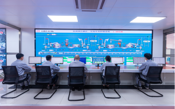 (图为国台庄园智能酿造一车间中央控制室)