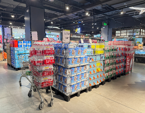 北京顺义区某永辉超市瓶装水售卖区 新华网沈美 摄