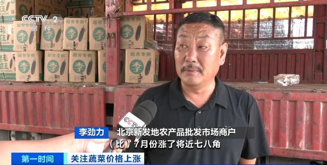 北京新发地农产品批发市场商户 李劲力:比7月份涨了将近1元左右,去年现在这个阶段也就2元左右。由于天气原因,茄子掉了不少花。