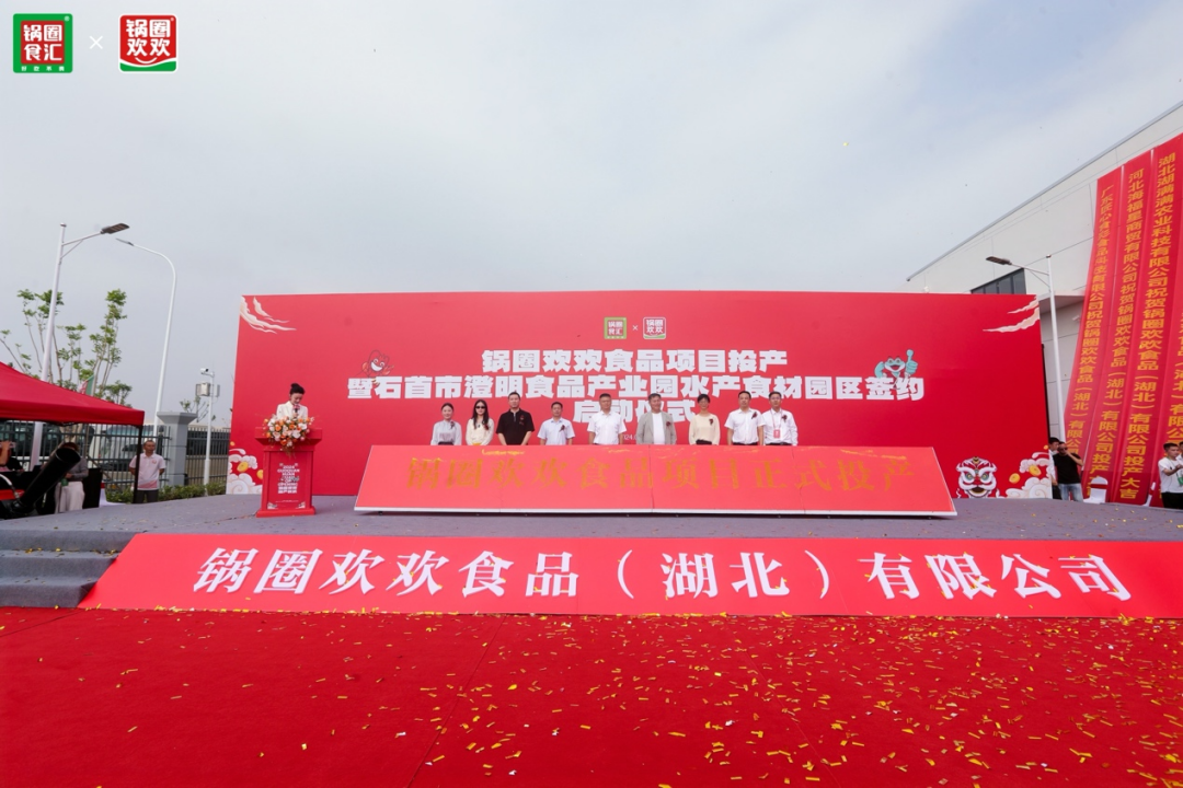 9月20日上午,锅圈欢欢食品(湖北)有限公司(以下简称“锅圈欢欢食品”)新工厂投产启动仪式在湖北荆州石首市成功举办。活动期间也同时举办了石首市澄明食品产业园水产食材园区签约仪式。石首市市长付勇,锅圈食品(上海)股份有限公司(以下简称“锅圈食品”)董事长杨明超,锅圈欢欢食品总经理周金金参加了本次仪式并发表致辞,石首市委副书记洪云锋主持了相关仪式,湖北省、荆州市及石首市相关部门领导出席了活动。