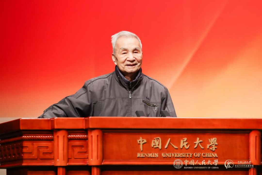 中国人民大学首批荣誉一级教授、原农业经济系创办人严瑞珍回顾了他毕业留校任教、参与创办农业经济系并编写具有中国特色的教科书的故事。严瑞珍表示,今年是农业经济系成立70周年,也是他执教的第70个年头,作为学院发展的亲历者、见证者、建设者,他见证了学院从孕育、初创、壮大再到如今成长为全国农经学科顶尖院校的全过程,对学院70年来在学科建设、人才培养、科学研究、师资队伍、国际交流、社会服务等方面取得的丰硕成果表示由衷高兴,为自己作为一名“老兵”感到无比光荣。希望学院继续传承陕公血脉、弘扬延安精神、厚植“三农”情怀,在新的历史起点不忘初心、牢记使命,谱写更加辉煌的篇章。