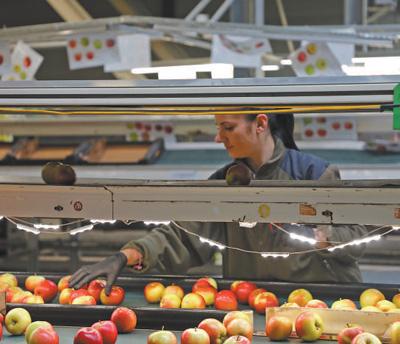 波兰格鲁耶茨县一家苹果加工企业内,当地工人正在分拣苹果。记者 禹丽敏摄